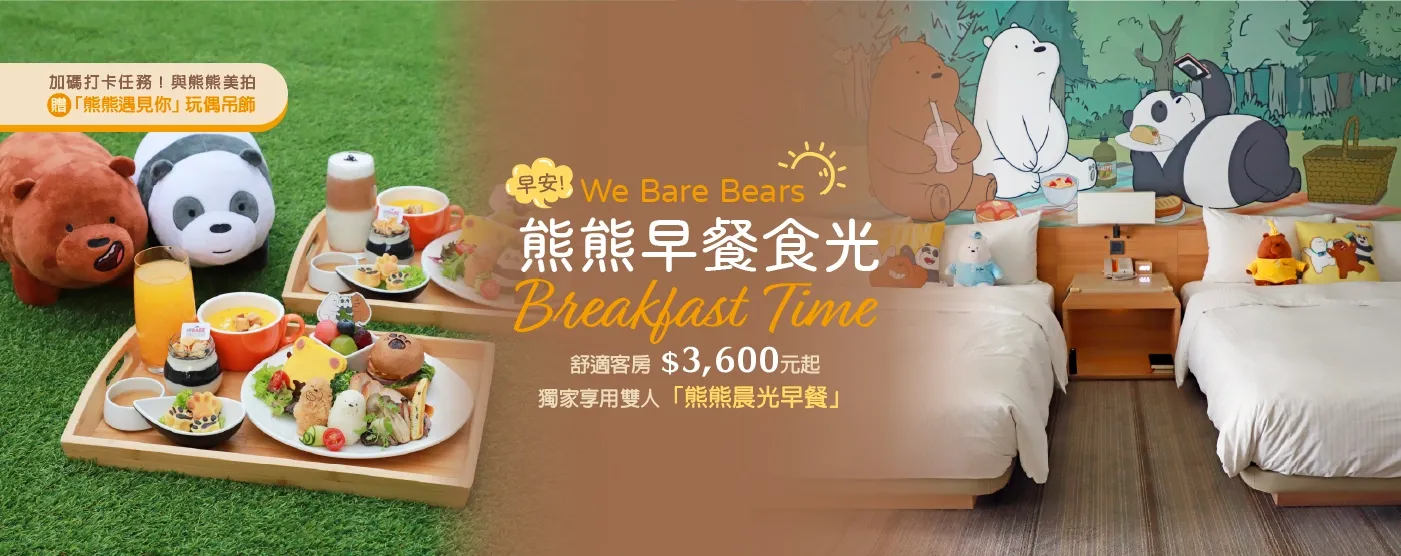 2. 此專案限平日(周一~周三)入住,並於隔日(週二~周四)享用「熊熊晨光早餐」雙人主題早餐套餐。