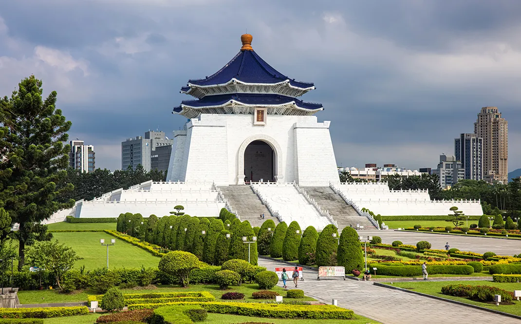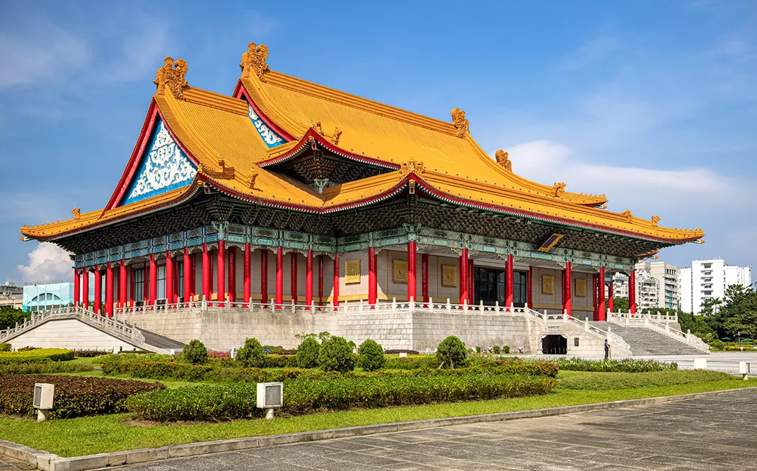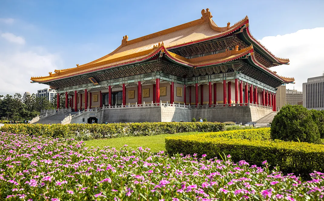 位於中正紀念堂左右兩側的國家音樂廳與國家戲劇院。戲劇院為戲劇、舞蹈等表演活動的場地,經常舉辦大型的表演活動,包括京劇、戲劇、兒童節目等;音樂廳是臺灣最具水準的音樂展演空間,經常舉辦室內樂,交響樂等大型的音樂活動。而兩廳院前廣場也會不定時舉辦戲劇、音樂活動,吸引眾多遊客前往欣賞。白牆藍瓦,70公尺高聳立在紀念公園的中央,不論從哪個角度看過去,都很宏偉。國外觀光客來到臺灣,不論行程如何排,都一定會到這裡來參觀一下。紀念堂的下方有陳列和展覽,也有紀念品販售。